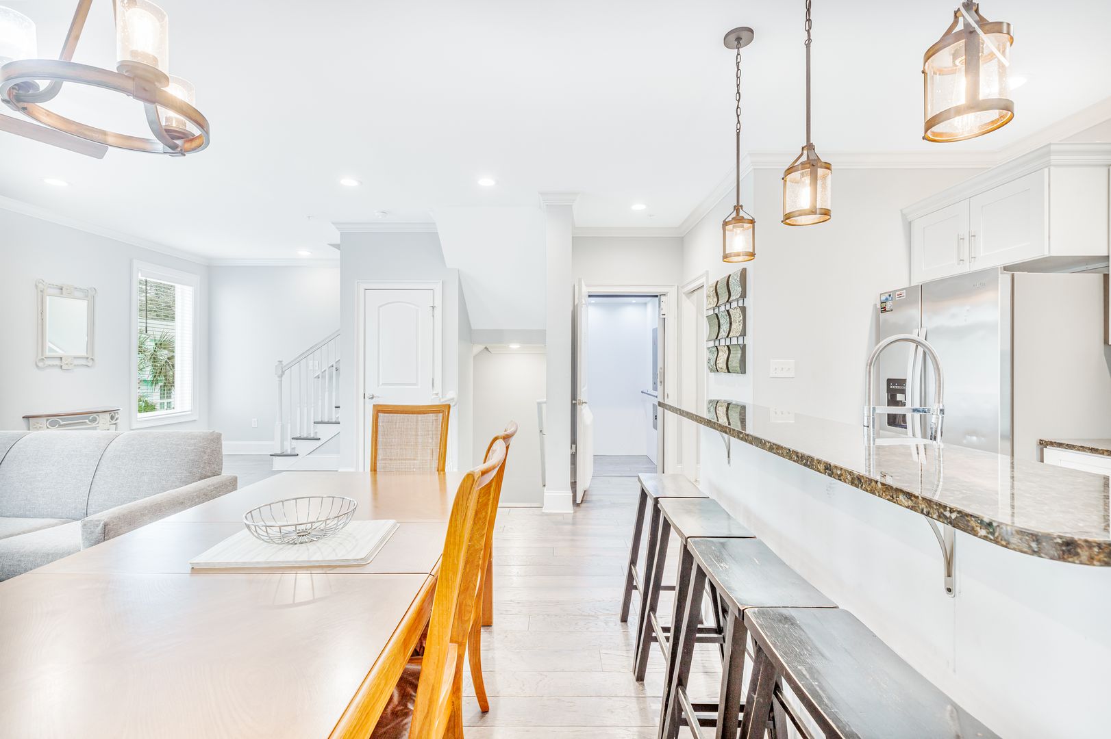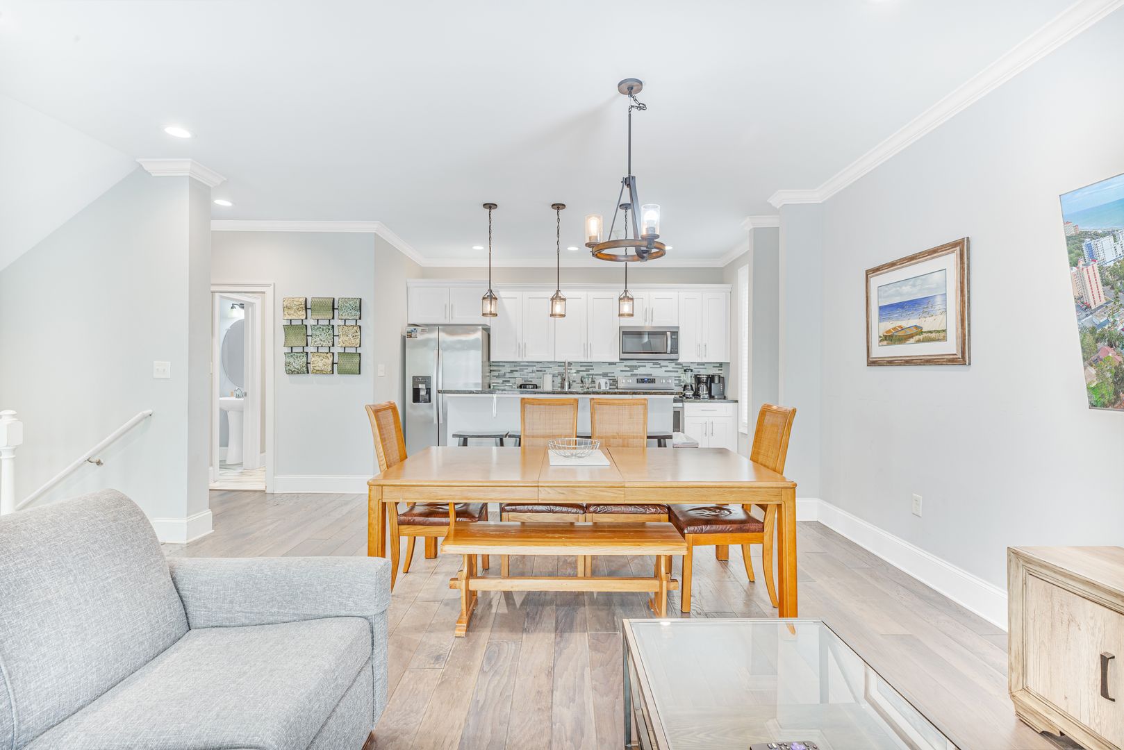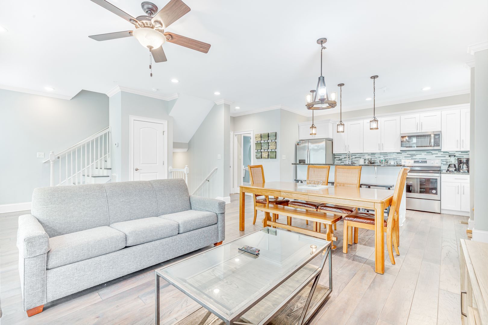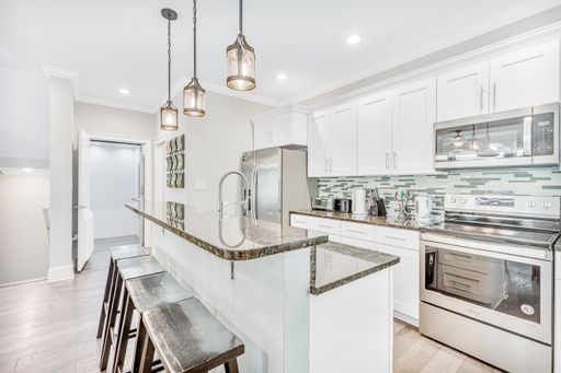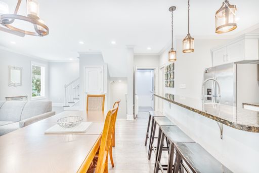 -2nd Floor: The main living area, with an open-concept kitchen and a stylish half bathroom, is perfect for entertaining. High ceilings and upscale finishes elevate the atmosphere throughout.