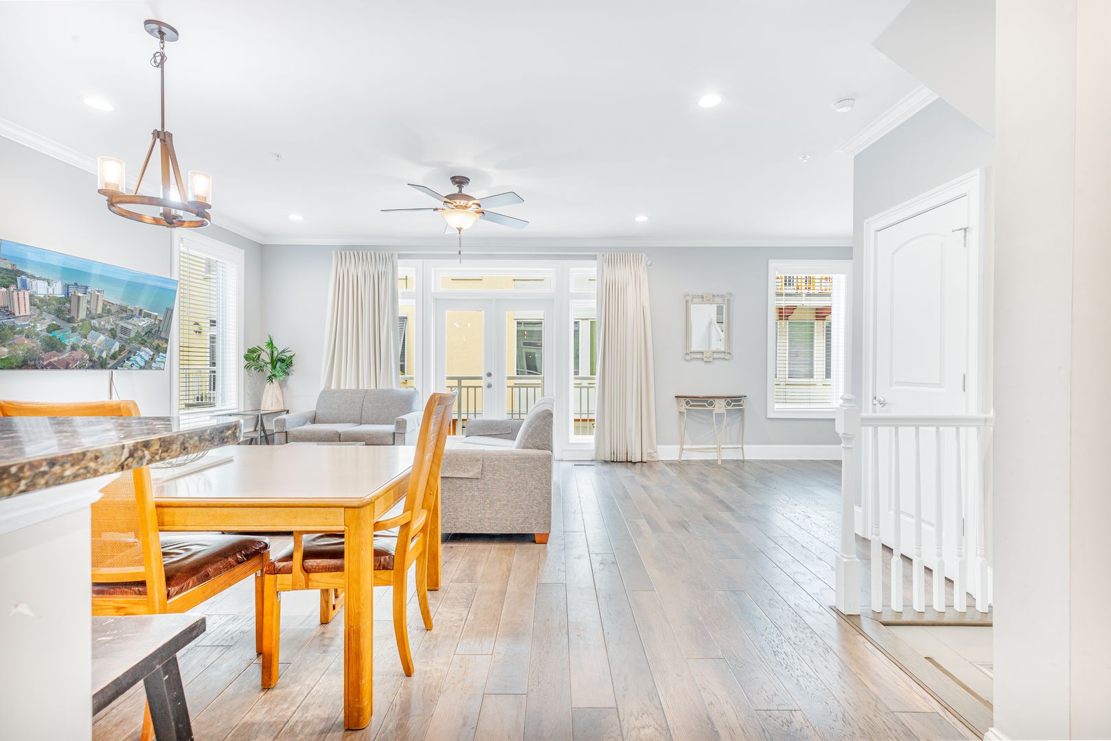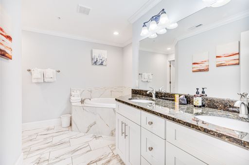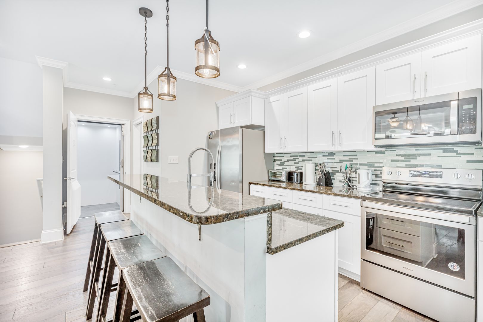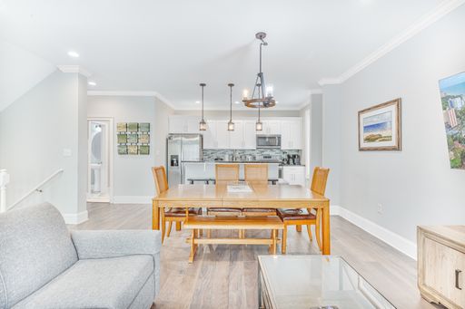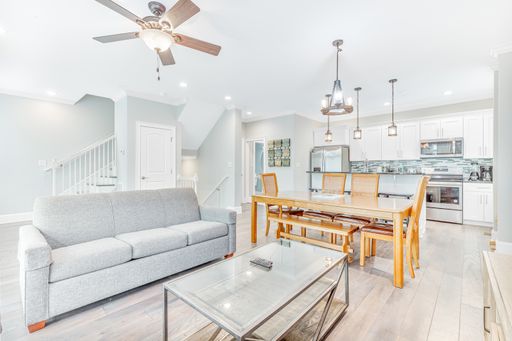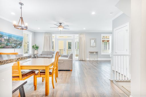 Experience the pinnacle of elegance in this gorgeous, fully furnished 4-story townhome, offering 4 bedrooms, 2.5 bathrooms, and a private elevator that conveniently stops on every floor. With a two-car garage and two private balconies, this home combines comfort with style. Smart TVs are installed throughout, ensuring modern convenience at every turn.
