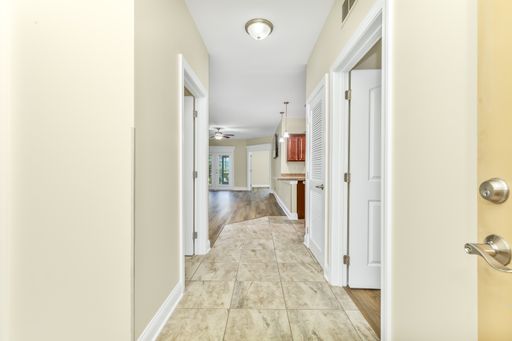 Step into your 1st Floor beachy dream condo!!! ***Enjoy a fresh new look – all carpets are being upgraded to stylish luxury vinyl plank (LVP) flooring!*** 2 bed/2 bath spacious property boasts a modern kitchen with plenty of cabinetry and a pantry for all your storage needs, a laundry room with washer and dryer and a split bedroom floor plan. Enjoy your morning coffee or afternoon beverage on the screened in balcony overlooking the beautifully landscaped pool area. Walk through the double doors to your master bedroom with his and hers walk in closets. Crown molding adds to the charm of the generous living area.